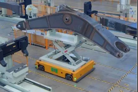 ①車橋生產(chǎn)制造工藝復(fù)雜,涉及的物料種類多樣,其中最大規(guī)格的物料滿載約18噸,對底盤要求較高;②重載AMR既有室內(nèi)運輸場景,也有室外遠(yuǎn)距離運輸場景,對融合導(dǎo)航的無縫切換有著極高要求;③項目地天氣雨水較多,室外物料運輸不能長時間雨淋,且大雨天氣會對導(dǎo)航的精度、速度帶來一定影響;④項目中的10余臺裝配線磁導(dǎo)AGV與數(shù)臺室外重載AMR共用一套調(diào)度系統(tǒng),這就對調(diào)度系統(tǒng)的穩(wěn)定性、兼容性等要求較高;①根據(jù)用戶實際工況,設(shè)計了一款載重20噸的室內(nèi)外重載AMR;采用 GPS+慣導(dǎo)+激光SLAM 融合的導(dǎo)航技術(shù),可室內(nèi)外無縫切換導(dǎo)航方式,實現(xiàn)在不同環(huán)境中的穩(wěn)定運行;車身采用翼開箱結(jié)構(gòu),使運輸物料免受雨水侵襲,同時多重的安全保障傳感器確保了穩(wěn)定運行;②專門為裝配線數(shù)臺重載AMR和十余臺室內(nèi)磁導(dǎo)AGV設(shè)計的調(diào)度系統(tǒng),既能滿足生產(chǎn)需求,也可滿足物流運輸需求。①改善產(chǎn)線生產(chǎn)效率。這是國內(nèi)首例室內(nèi)產(chǎn)線+室外物流運輸共用一套調(diào)度系統(tǒng)的AMR應(yīng)用項目,也是國內(nèi)首個汽車行業(yè)室外重載AMR應(yīng)用,節(jié)省了相關(guān)配送成本,實現(xiàn)了生產(chǎn)所需物料的精準(zhǔn)高效配送;②為用戶智能化轉(zhuǎn)型賦能。作為集團(tuán)第一個實現(xiàn)室外物料智能化轉(zhuǎn)運項目,展示了用戶在智能化、數(shù)字化工廠建設(shè)上的亮點、看點,提升了企業(yè)生產(chǎn)的智能化、數(shù)字化水平。2、臨工智科挖掘機(jī)動臂轉(zhuǎn)運項目通過AGV自動轉(zhuǎn)運實現(xiàn)了挖掘機(jī)動臂的組焊、焊接、打磨、轉(zhuǎn)運全自動運行。由MES系統(tǒng)下發(fā)計劃,AGV與焊接工作站互聯(lián)互通,AGV由上料點取動臂物料,并自動運輸至機(jī)器人焊接工作站。焊接完成后,自動運送至補(bǔ)焊工位;補(bǔ)焊完成后,由AGV跨車間自動運輸至噴漆線。難點:1.工件長度和重量較大、種類多且外形不規(guī)則,需要AGV根據(jù)不同規(guī)格實現(xiàn)精準(zhǔn)定位。2.生產(chǎn)現(xiàn)場布局緊湊,轉(zhuǎn)運路線復(fù)雜,需要側(cè)移等功能,轉(zhuǎn)向精度要求嚴(yán)格。3.出入車間的坡度較大,室外道路環(huán)境復(fù)雜差異大。創(chuàng)新點:1.合理的結(jié)構(gòu)設(shè)計,實現(xiàn)重載AGV的前進(jìn)、側(cè)移、升降高精度定位;2.小巧車體可載重10噸以上物料,實現(xiàn)復(fù)雜路線靈活應(yīng)用;3.重載AGV滿足室內(nèi)外全工況運行。AGV不需要人工操作,降低制造成本;AGV安全避讓保證員工的工作安全,避免因工作人員的疏忽或疲勞而造成的工傷事故和損失;AGV的操作精度更高,穩(wěn)定性更好,安全性更強(qiáng)。3、天津朗譽(yù)240噸背負(fù)式舉升重載AGV風(fēng)電行業(yè)應(yīng)用風(fēng)電行業(yè)機(jī)艙總成下線從車間內(nèi)組裝工位到車間室外成品存儲工位的運輸;特點:過軌、坑洼復(fù)雜地面自適應(yīng);自帶稱重測試及質(zhì)心顯示;與工裝對接自動左右對中系統(tǒng);零下30°C極寒環(huán)境情況下正常工作。難點:極寒環(huán)境內(nèi)保證AGV正常運行;創(chuàng)新點:重載AGV產(chǎn)品以大尺寸、高承載為特征,它可以將大型物件的加工、搬運等環(huán)節(jié)以自動化形式實現(xiàn)。特別是在航空航天、軍工、風(fēng)電等應(yīng)用場景,都需要大型噸位的 AGV產(chǎn)品來滿足。通過首臺AGV順利導(dǎo)入風(fēng)電行業(yè),讓天津朗譽(yù)在風(fēng)電行業(yè)占有一席之地,比如金風(fēng)科技、明陽智能等企業(yè)陸續(xù)合作。4、航發(fā)機(jī)器人240t級重型運輸車風(fēng)電行業(yè)應(yīng)用隨著風(fēng)力發(fā)電機(jī)組單機(jī)功率越來越大,其部件尺寸和重量也越來越大,部分機(jī)艙重量甚至超過300t。已有的風(fēng)電機(jī)組生產(chǎn)車間,存在無法適應(yīng)新型號更大功率機(jī)組生產(chǎn)和組裝的問題。行車起吊還存在無法將工件在車間之間進(jìn)行轉(zhuǎn)運,無法將工件運到室外的問題。2020年初航發(fā)接到客戶需求,需定制額定承載200t(總重240t級)運輸車,以實現(xiàn)風(fēng)電機(jī)組部件在車間內(nèi)各工位之間的轉(zhuǎn)運,以及將部件成品運輸至室外進(jìn)行裝車。經(jīng)過近三個月的設(shè)計制造,運輸車于2020年6月底順利交付客戶。